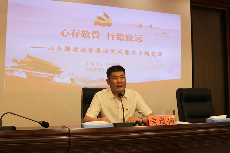 滕發(fā)集團副總經(jīng)理、滕投集團董事長宗成偉以《心存敬畏 行穩(wěn)致遠》為題為全體干部職工講授了黨風廉政建設專題黨課。