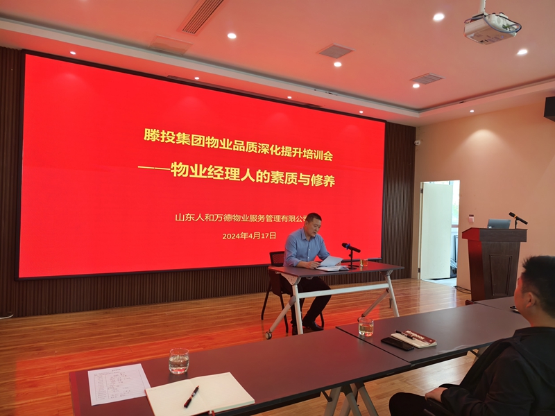 隨著“物業品質深化提升年”的深入推進,為進一步提升物業經理人的綜合素質,深刻探索新的管理模式和服務方式,為業主提供更優質、更便捷的服務。4月17日,以《物業經理人的素質和修養》為主題的滕投集團物業品質深化提升培訓會,在人和天地黨群服務中心二樓會議室召開。萬德物業公司全員和集團下轄各住宅項目物業經理、副經理齊聚一堂,共同學習探討物業品質深化提升的有效途徑。