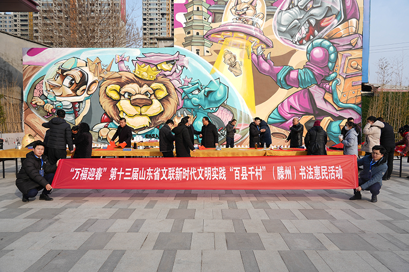 1月21日上午,由滕州市宣傳部、文明辦、新時(shí)代文明實(shí)踐服務(wù)中心主辦的“翰墨賀歲·福滿善城·萬福迎春”新春送祝福活動(dòng)在山東興滕置業(yè)開發(fā)的興滕·未來城、柳岸風(fēng)和兩項(xiàng)目的營銷中心現(xiàn)場舉行,滕州市文聯(lián)、文旅局、文化館、書法協(xié)會(huì)書畫家二十余人參加了本次活動(dòng),用傳統(tǒng)的書畫藝術(shù)形式,為市民群眾送上飽含真心的新